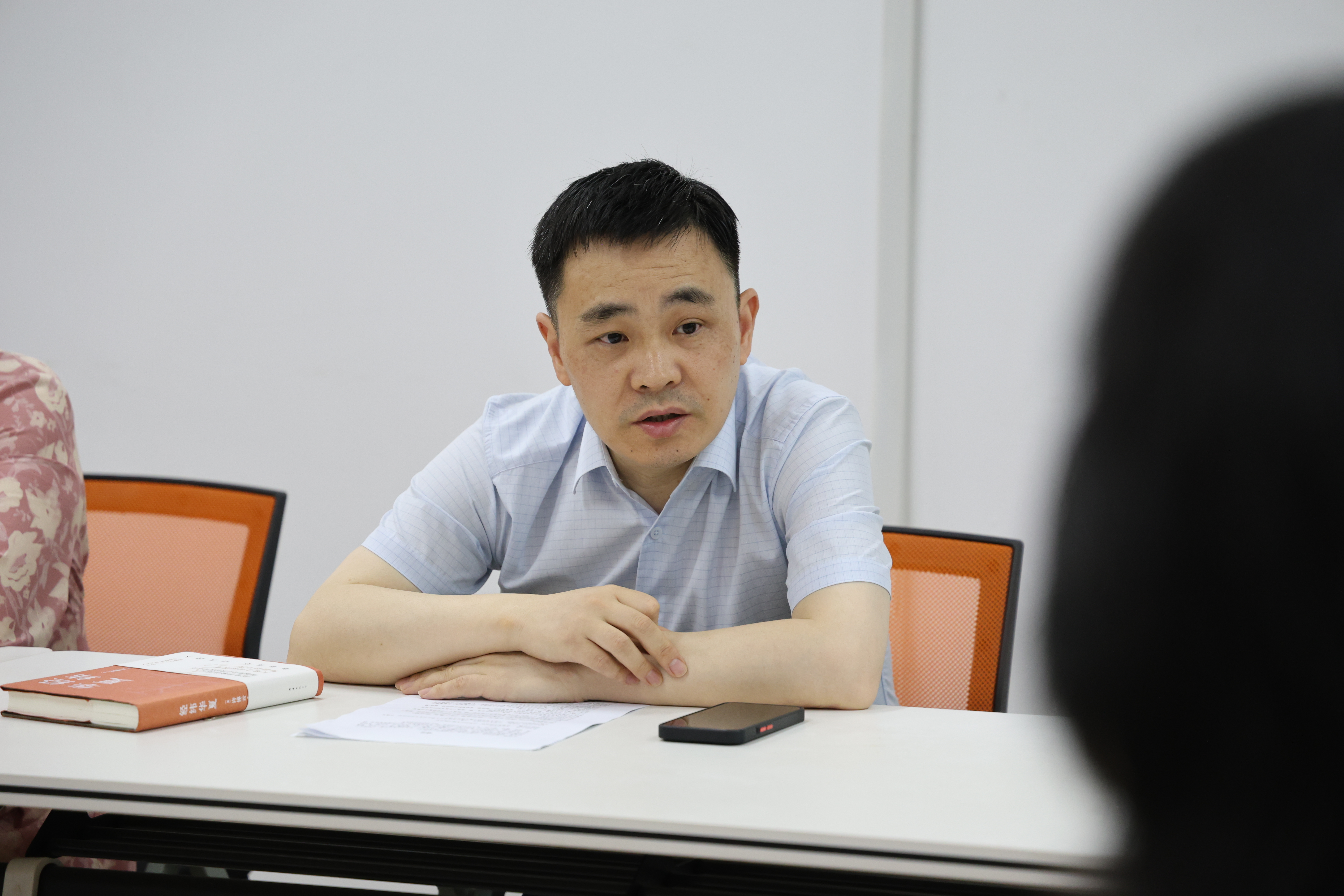 2025年5月20日下午,第三十九期“思齐”悦读会于人文学院楼403如约开讲。本期悦读会以“寻根华夏经纬,共话文化归属”为主题,由范知欧老师主讲,党委副书记袁慧兰老师主持,同学们积极参与。