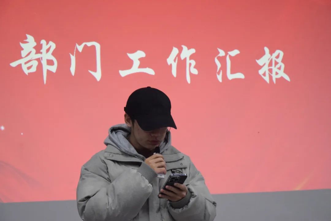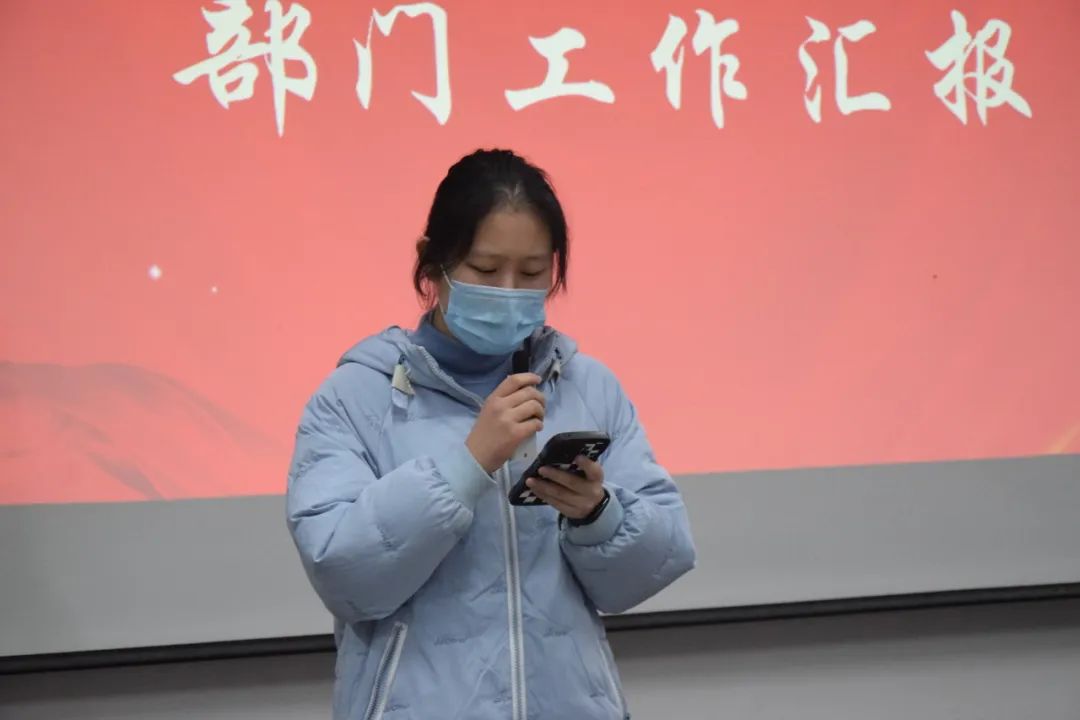 理论学习会结束后,各位团委学生会各部门负责人代表进行工作汇报,汇报内容包括近期部门工作主要内容以及本学期所取得的成果,并对部门现存问题进行了反思,针对薄弱环节提出整改措施,同时对后期工作进行了初步部署与规划,以更好推动团学部门工作有序开展。